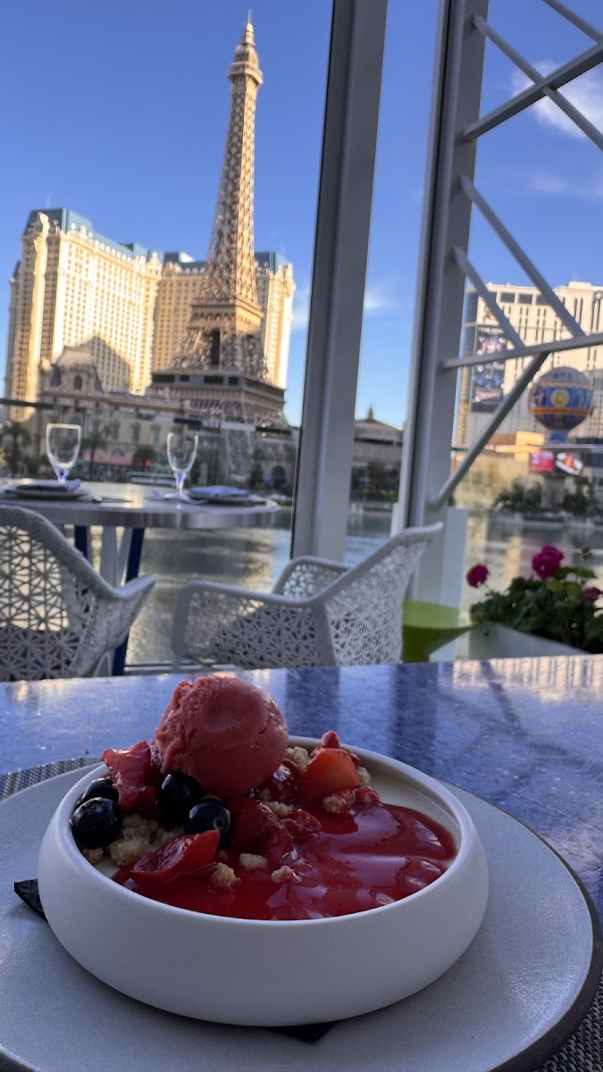 We went here for our anniversary and booked the table right by the gate of the fountain view, on the patio. These 3 tables were roped off which I’m assuming because you had to spend more money to reserve this view. The food was delicious and our server was awesome! He was so friendly and they all made sure our table was cleared off right away or topped off the water/made sure we didn’t need anything. They brought us a cute dessert for our anniversary as well. The only issue was the fact no one had common courtesy or respect of your space at the tables. Every time the fountains went on, people rushed OVER the ropes and took pictures in your space, they didn’t ask nor cared if they were in your personal space. It was RIDICULOUS. I had to tell a lady to please step back because she was leaning on my husband for a picture. I would suggest the employees enforce the ropes and making sure guests were being respectful of each others space or enforce that no one can cross over the ropes to the tables by the gate outside.